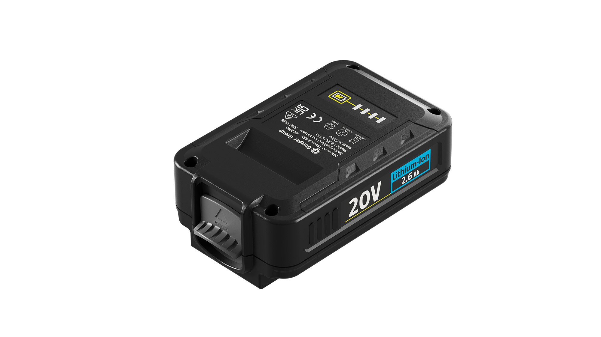 La batterie 20 V Ion-Lithium avec indicateur de charge.